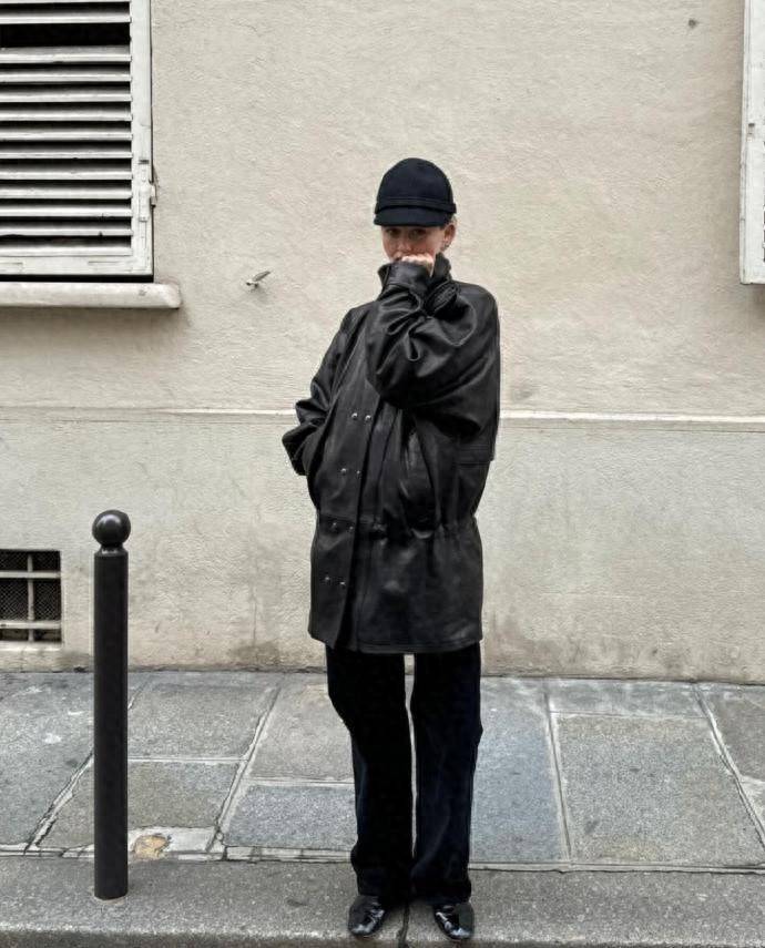今天T爷给大家介绍的是来自丹麦ins时尚博主josefinehj,她的穿搭以黑白米色等低饱和色调为核心,看似是简单的色彩堆砌,实则是对材质、剪裁与细节的精准把控,每一套造型都透着高级且松弛的质感。她的开篇造型便展现出极简主义的精髓,黑色皮质廓形外套搭配同色系长裤与皮鞋,头戴黑色针织帽,简约的黑调造型中,皮质的硬朗质感与宽松廓形形成平衡,斑驳的浅墙背景更衬出造型的高级感,完美诠释了 “低饱和色调是高级感的底色”。