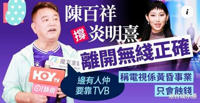 香港资深艺人陈百祥在10月8日出席活动时,力挺炎明熹离开TVB自组公司的决定,指如今已没有人必须依赖TVB生存,电视台也早已不具备过去那种“封杀艺人”的权力与影响力,并且对总经理兼好友曾志伟所称“公司今年实现盈利”的说法表示怀疑,认为其中有水分,长期运营恐将面临更大亏损。此番言论一出,立即引发香港媒体及网民热议。